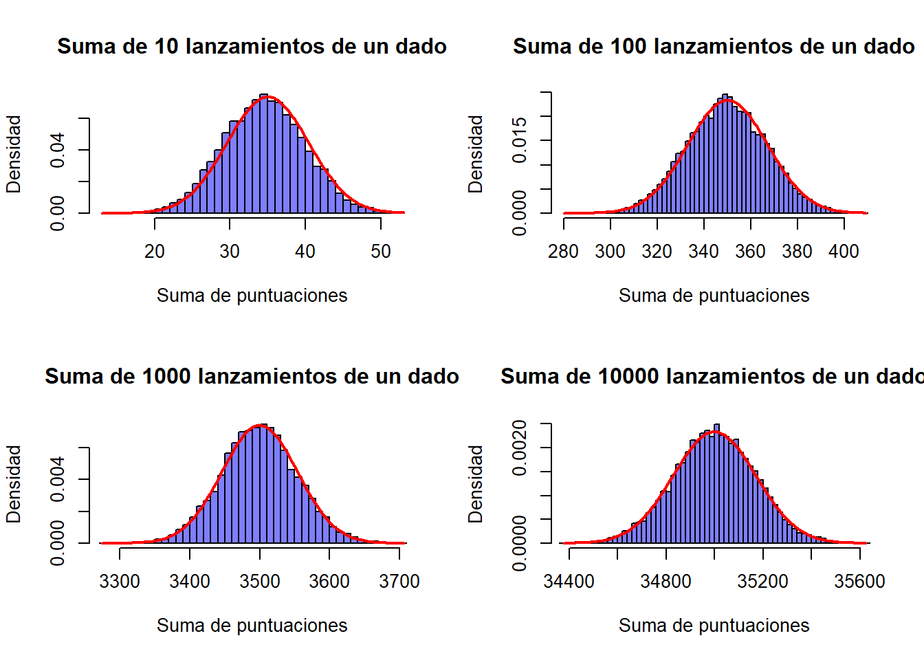 5.3.4.2 Normalidad asintótica de la suma de puntuaciones de un dado