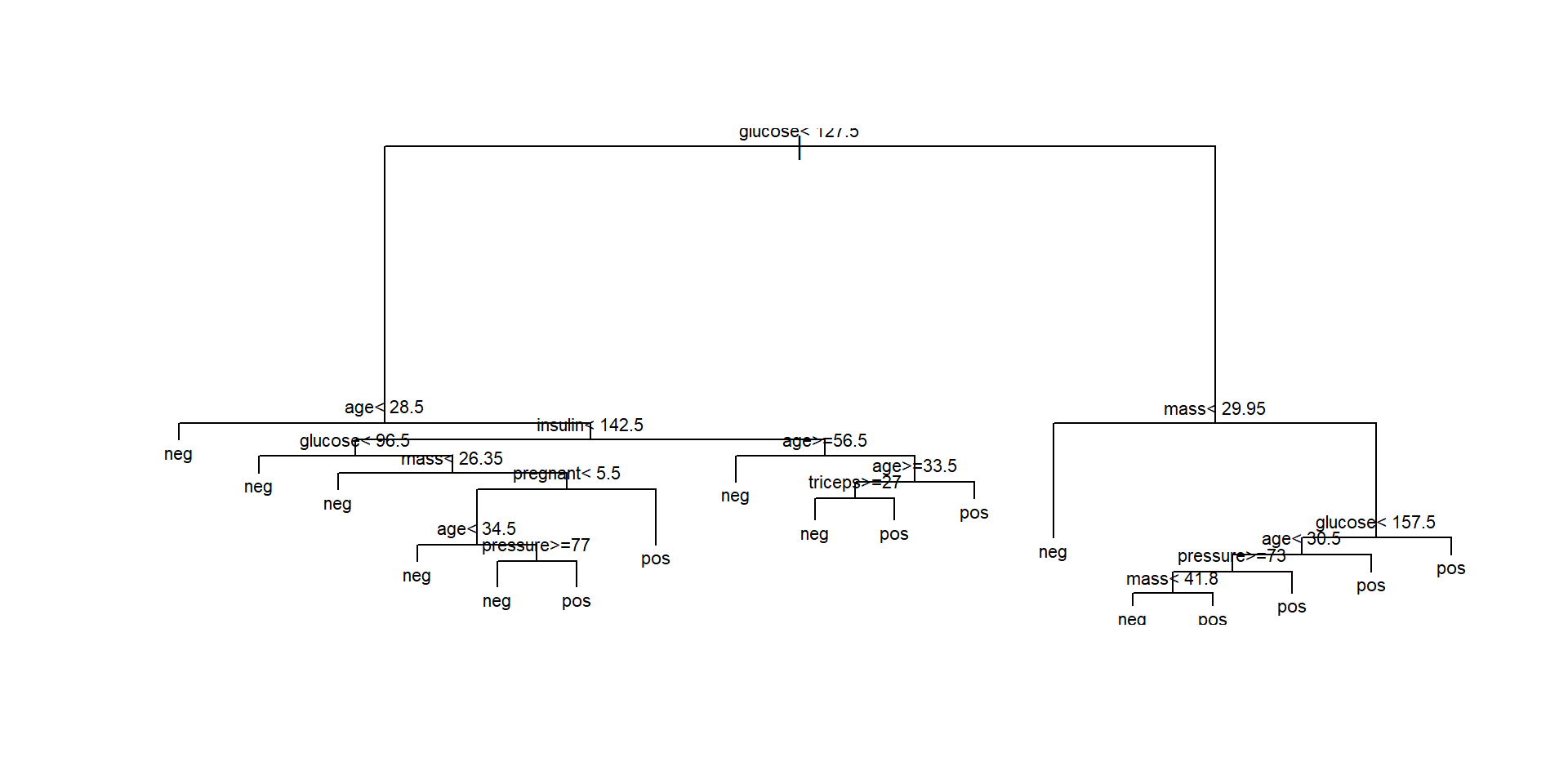 Each node shows: (1) the predicted class (‘neg’ or ‘pos’), (2) the predicted probability, (3) the percentage of observations in the node.