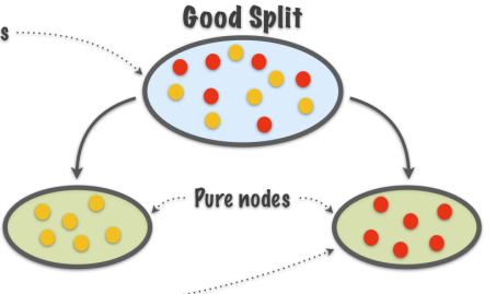 Intuitively, when we split the points we want the region corresponding to each leaf node to be “pure”.