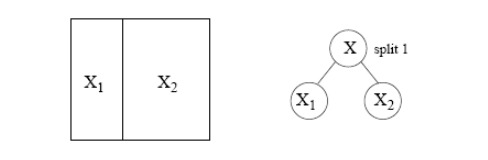\[ R_1(j, s)=\left\{X \mid X_j<s\right\} \text { and } R_2(j, s)=\left\{X \mid X_j \geq s\right\} \]