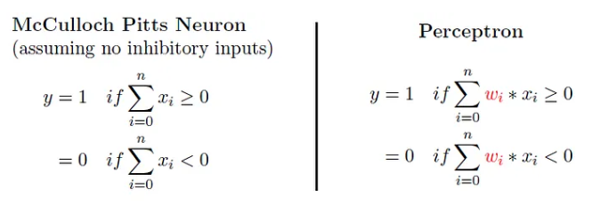 The Perceptron represents an improvement over McCullough-Pitts’ neuron: