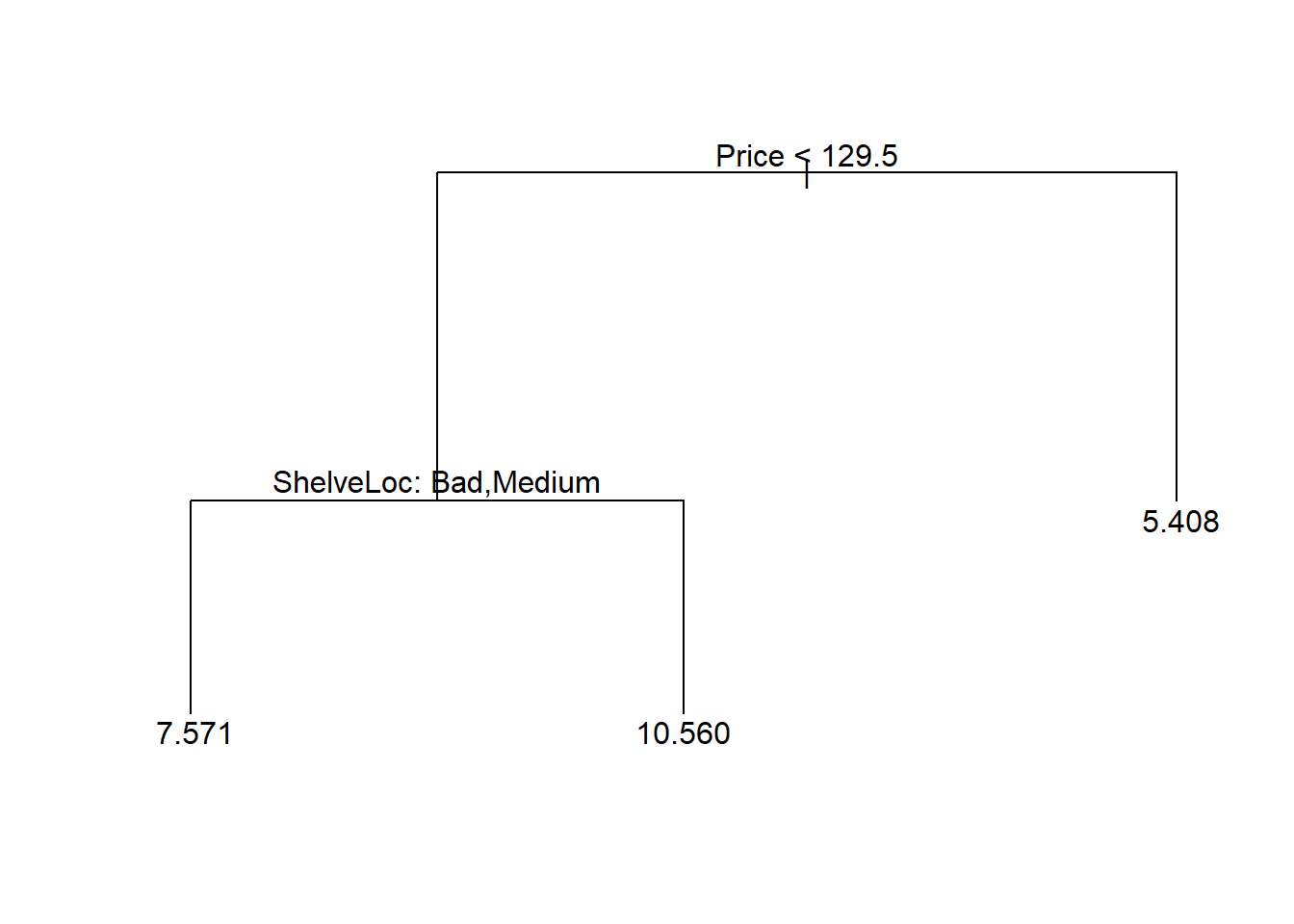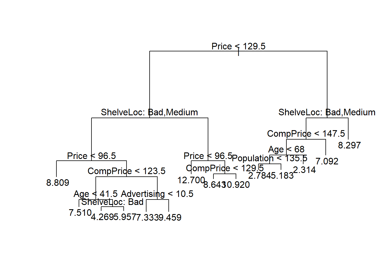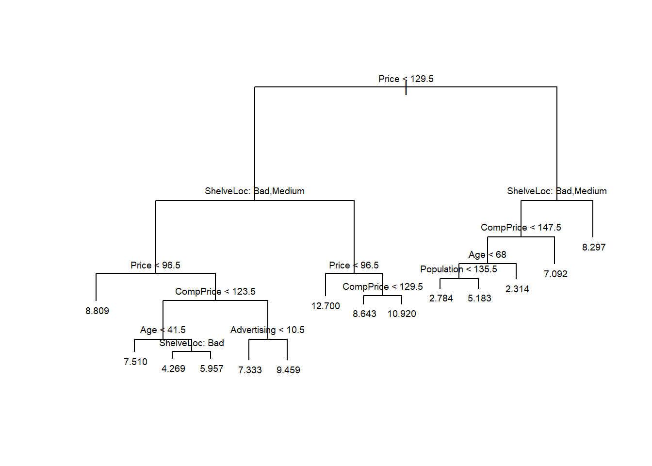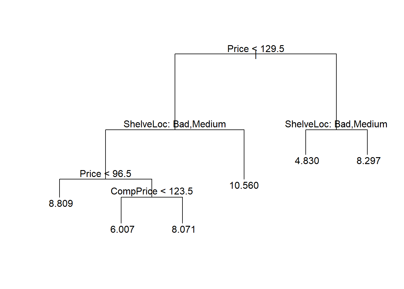 - Type in the name of the tree object in order to get a detailed text output. Pick one of the terminal nodes, and interpret the information displayed.