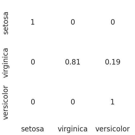 = pd.DataFrame(cm_norm, index = ['setosa','virginica','versicolor'],