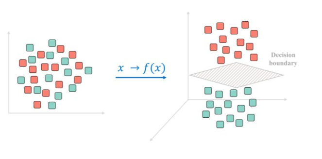 Projecting the data in a high-er dimensional space can turn it from non-separable to separable.